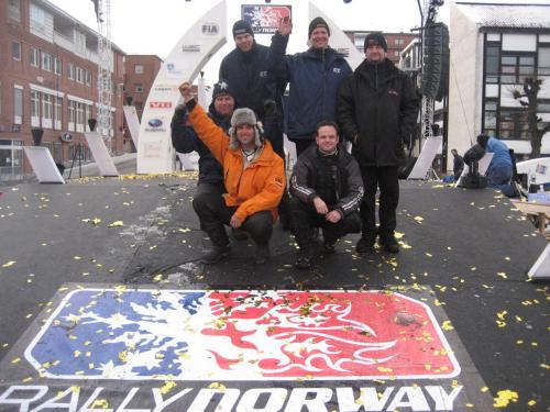 * Finishing the WRC Rally of Norway - Kiwi pair of Andrew Grant (bottom left) and Glenn Goldring (bottom right) with the ST Motors crew in Hamar. Click to download